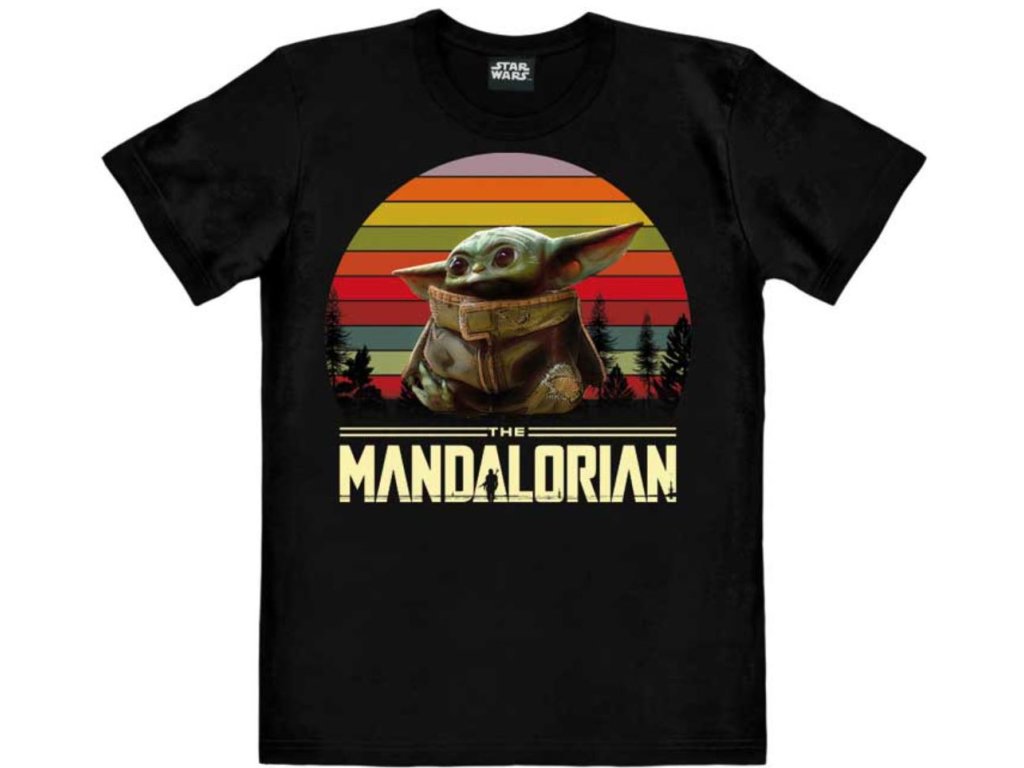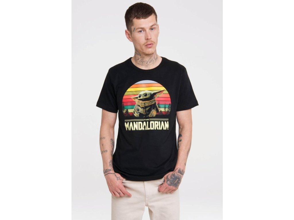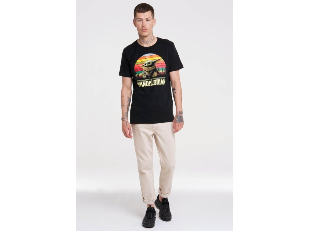 Černé pánské tričko s motivem postavy Baby Yoda ze seriálu Mandalorian.