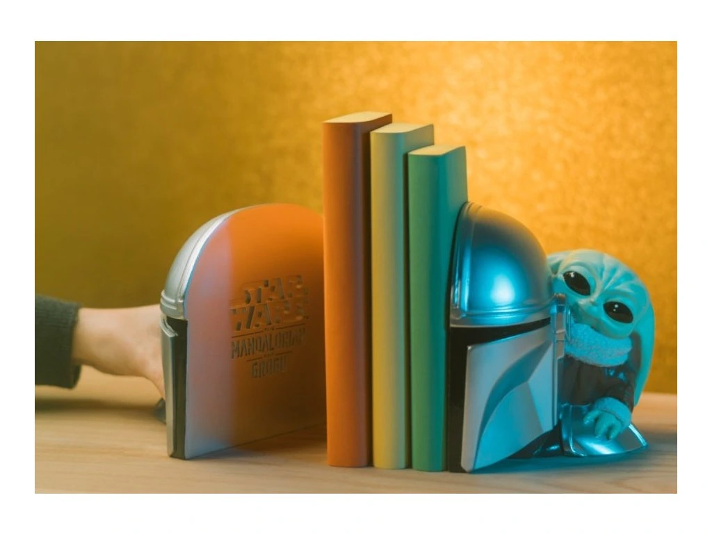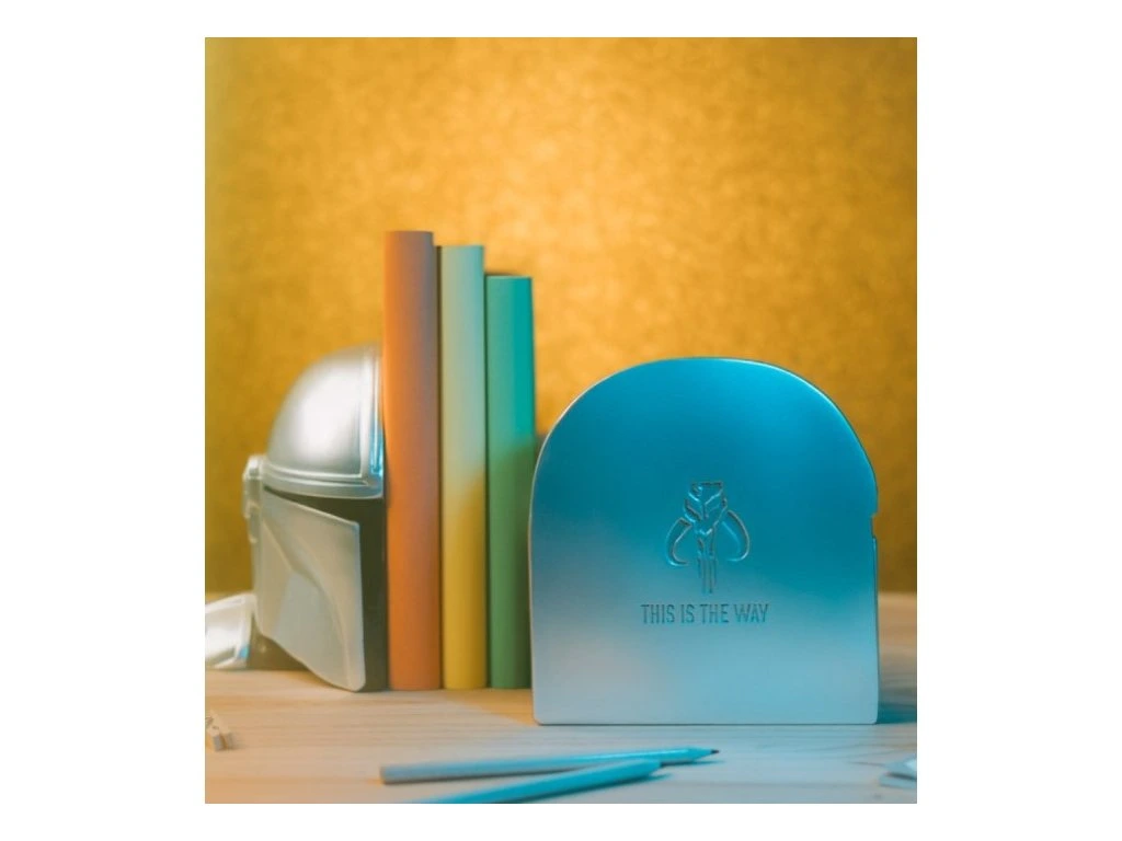 Oficiální produkt - zarážka na knihy z katalogu výrobků s licencí a grafikou populární sci-fi ságy Star Wars - The Mandalorian.