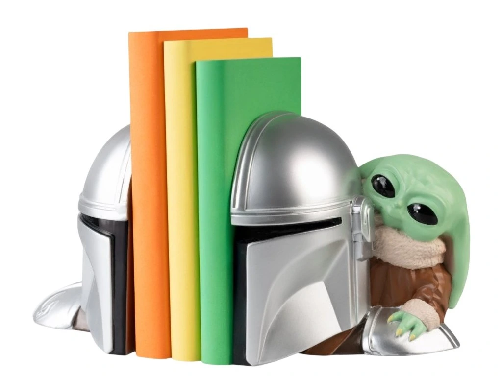 Dohlédněte na svou sbírku knih s pomocí nejslavnější dvojice z předaleké galaxie. Tato prémiová dvoudílná zarážka na knihy spojuje v jeden celek ikonickou helmu Mandaloriana, za kterou vykukuje zvědavý Grogu (Baby Yoda). Vyrobeno z vysoce kvalitní pryskyřice s důrazem na kovový odlesk helmy a věrné detaily postavy Grogu. Každý kus je modelován v reliéfu a ručně malován, což z něj dělá unikátní sběratelský kousek. Pevná konstrukce hravě udrží vaše knihy, komiksy nebo DVD úhledně seřazené, zatímco design dodá poličce neopakovatelný nádech seriálu The Mandalorian.