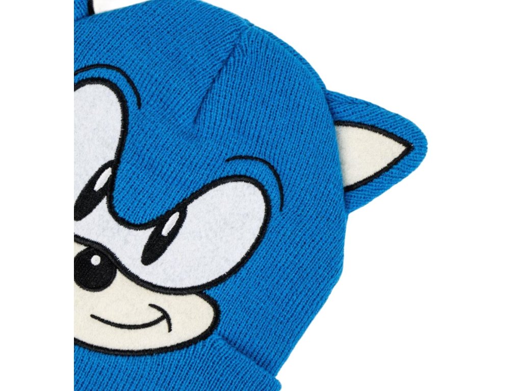 Oficiální produkt - dětský zimní set čepice a rukavic z katalogu zboží s grafikou a licencí herní a filmové akční postavičky Sonic the Hedgehog (Ježek Sonic).