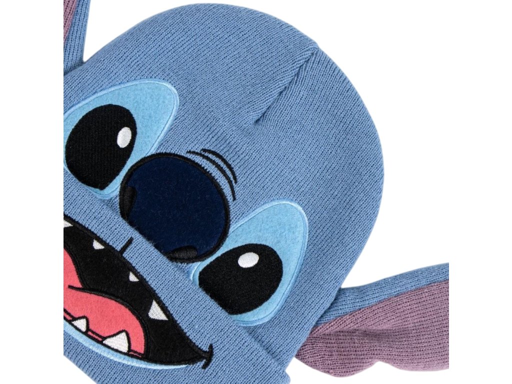Oficiální produkt - dětský zimní set čepice a rukavic z katalogu zboží s grafikou a licencí animované pohádky Lilo & Stitch od filmové společnosti Disney.