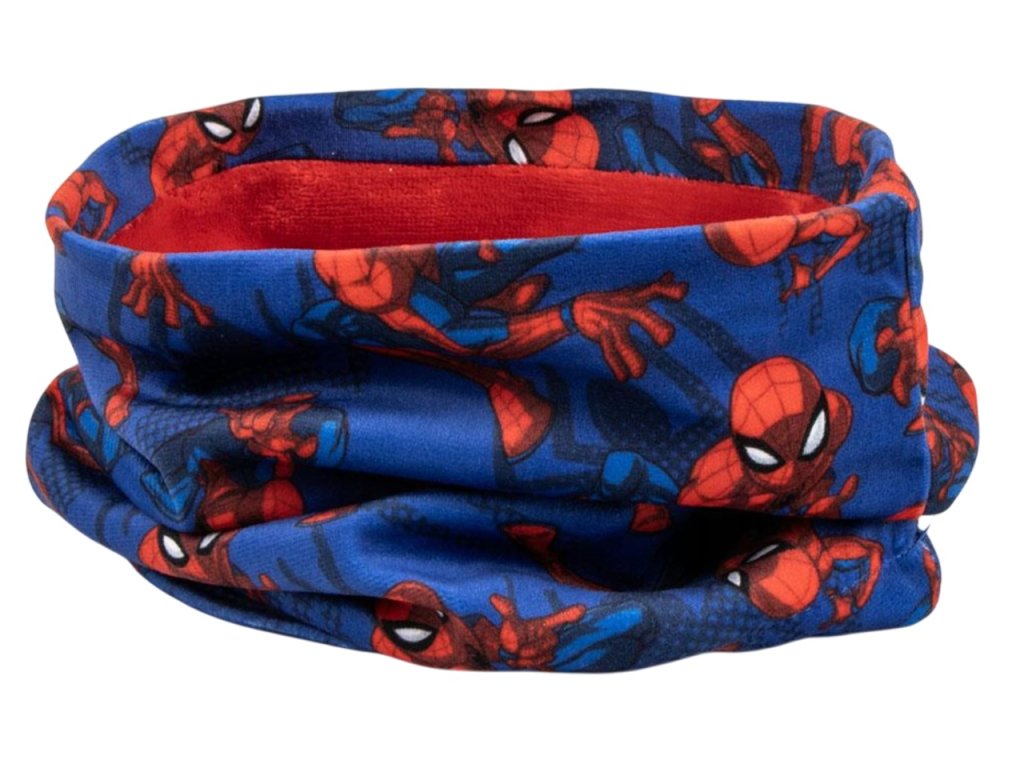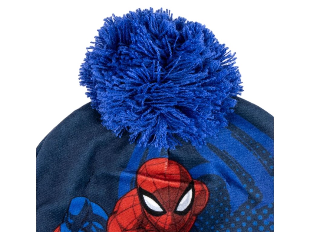 Oficiální produkt - zimní set (čepice, rukavice, šátek) z katalogu výrobků s grafikou a licencí populárního superhrdiny jménem Spiderman od společnosti Marvel.