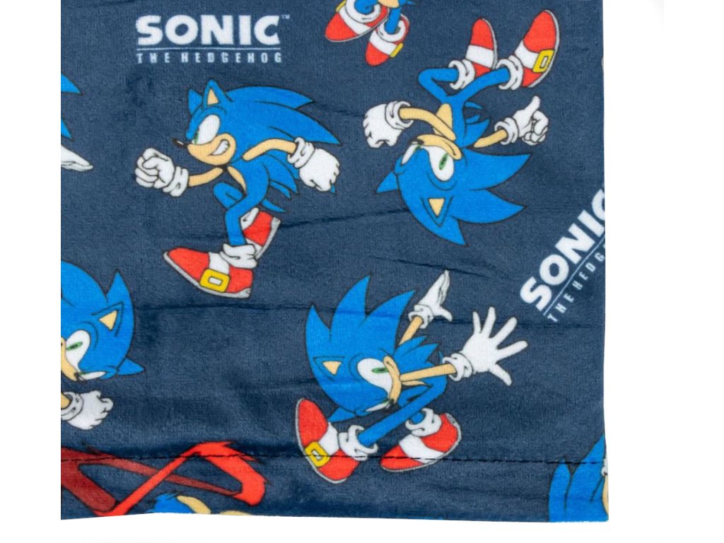 Oficiální produkt - dětský zimní set (čepice, rukavice, šátek) z katalogu výrobků s grafikou a licencí akční herní postavy Sonic the Hedgehog (Ježek Sonic).