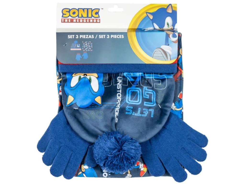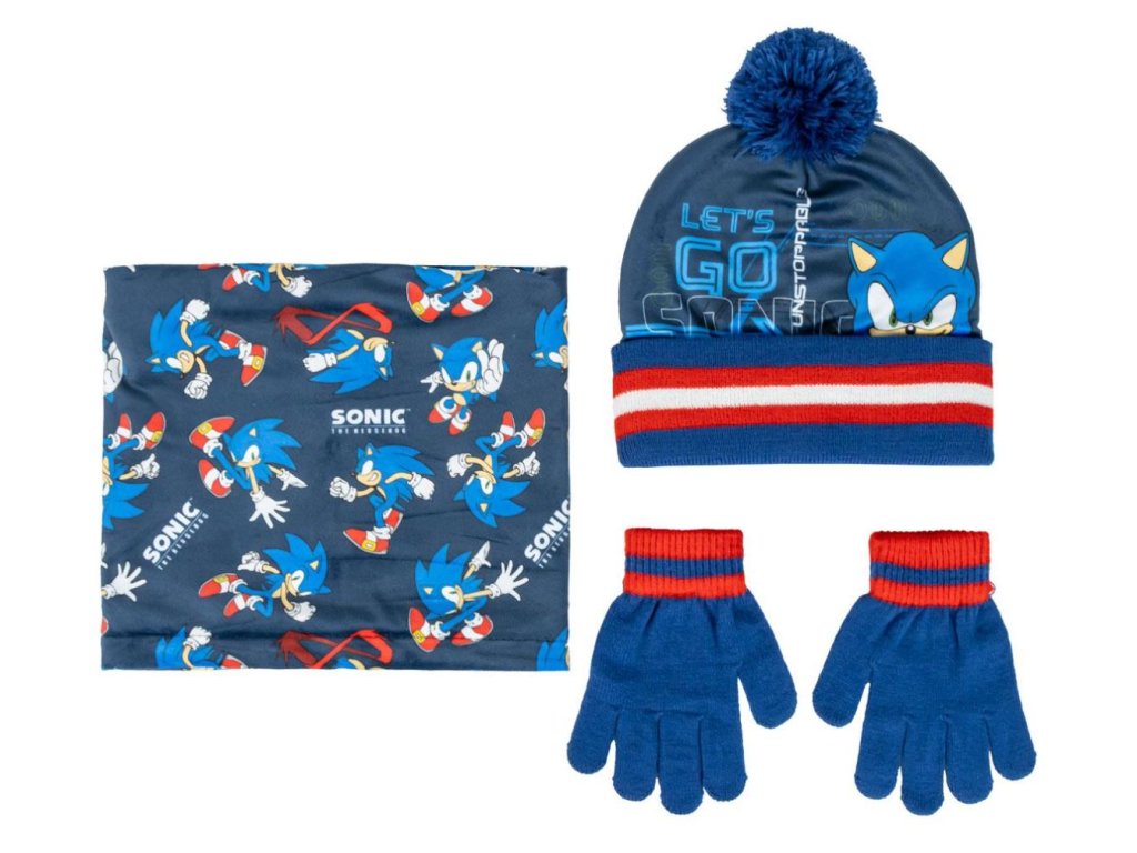 ZIMNÍ SET3|ČEPICE,RUKAVICE & ŠÁTEK SONIC THE HEDGEHOG|LET'S GO SONIC